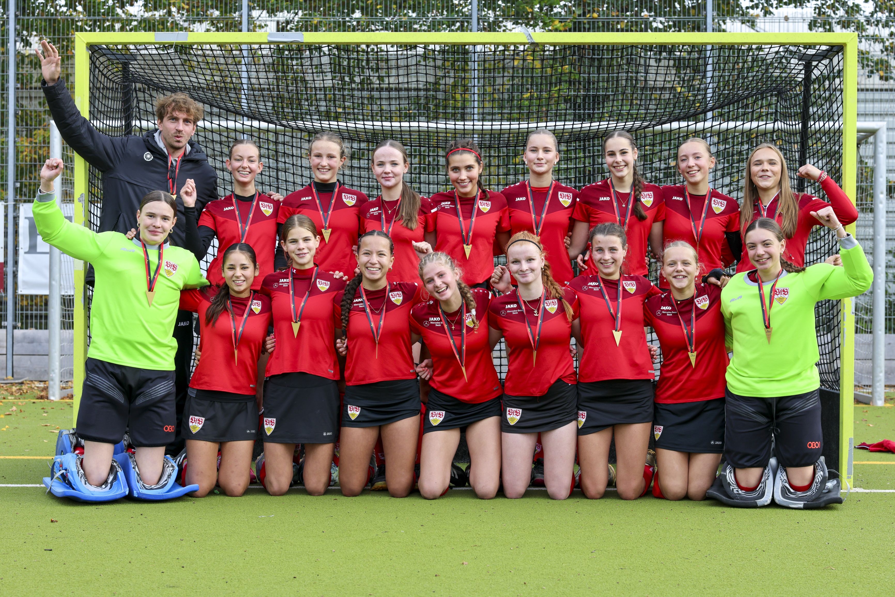 Im Final der Verbandspokals traf unsere wU16 am Sonntag auf eigenem Platz auf das Team vom HC Heidelberg. Das erste Viertel dominierten wir klar. Wir kamen mehrfach bis in den Schusskreis und hatten bereits einige Torchancen, bevor Nele in der 7. Minute einen Freischlag von der Seitenlinie abfing und Emilia G. rechts an die Grundlinie schickte. Deren scharfe Hereingabe landete zunächst bei Emilia T., deren Schuss noch geblockt werden konnte, doch war der Abpraller leichte Beute für Frieda, die mit einem schönen Flachschuss ins Linke Eck das 1:0 erzielte. Angriffsbemühungen der Heidelbergerinnen blieben zumeist schon im Mittelfeld hängen. Ansonsten waren Yaelle und Alix in der Innenverteidigung oder Sara und Lucie auf Außen zur Stelle und ließen erst einmal wenig zu. In der 12. Minute war Emma am Zug, die nach längerer Verletzungspause wieder zurück ins Team gekommen war. Frieda hatte mittig einen Aufbaupass abgefangen und Nele bedient. Die steckte den Ball durch in den Schusskreis zu Emma. Die Torhüterin lag schon vor ihren Füßen und so drehte sie noch einmal nach rechts ab, um den Ball aus spitzem Winkel zum 2:0 ins lange Eck zu schlenzen.