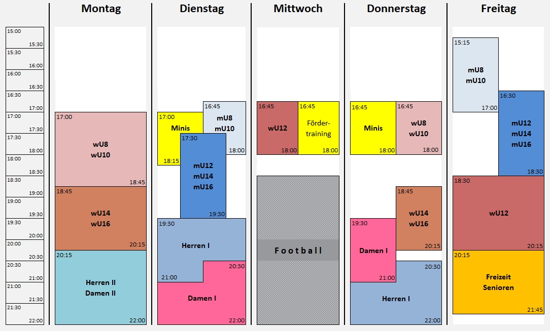 | Damen II | Montag | 20:15 - 22:00 |